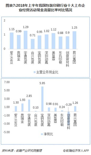 2018年上半年,除紫江企業(yè)、宇通包裝和奧瑞金的存貨周轉(zhuǎn)率在3次以上,其余企業(yè)均在2.5次以下,說明銷貨速度較慢;2018上半年,十家上市企業(yè)中,銷貨最快的是合興包裝,而經(jīng)營活動現(xiàn)金流入最多的是紫江企業(yè)、凈額最高的是奧瑞金。