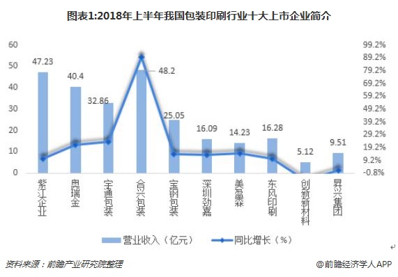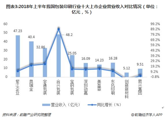 2018年上半年十大上市企業(yè)總營業(yè)收入達(dá)到254.97億元,不管是從營收規(guī)模還是增速來看,合興包裝表現(xiàn)最搶眼;從營收規(guī)模來看,合興包裝營業(yè)收入以0.97億元的差距超越了營業(yè)收入為47.23億元的紫江企業(yè),營業(yè)收入實(shí)現(xiàn)了48.2億元,同比增長89.5%。