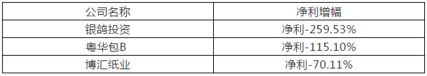 在業績向好的企業中,凈利潤增幅100%以下、超過50%的有3家,即宜賓紙業(88.68%)、美利云(73.52%)、山鷹紙業(59.04%);增幅在50%以下的企業有9家,包括青山紙業(46.87%)、凱恩股份(18.97%)、中順潔柔(16.60%)等。10家紙企凈利潤同比下降,銀鴿投資和粵華包B下降最多,降幅分別為-259.53%和-115.10%。