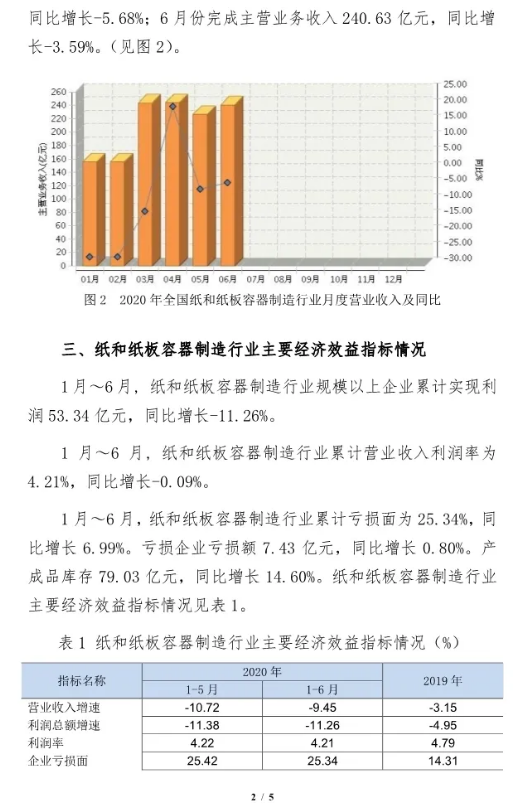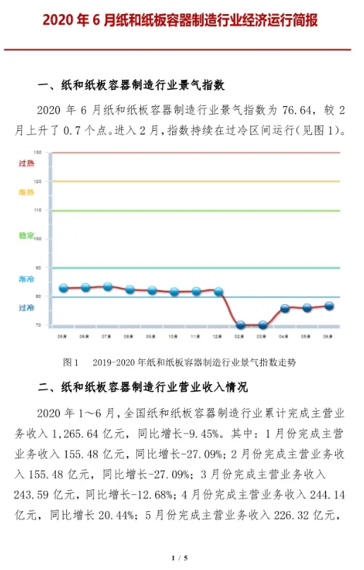 2020年6月紙和紙板容器行業經濟運行簡報