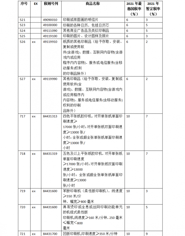 據(jù)粗略統(tǒng)計(jì),883項(xiàng)商品中涉及印刷行業(yè)的相關(guān)調(diào)整如下: