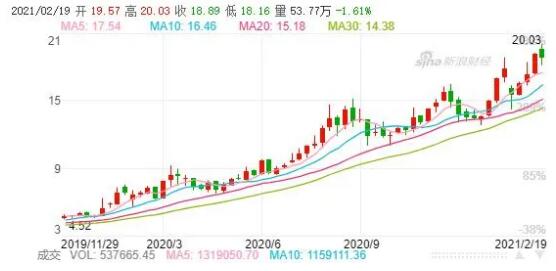 若從進入2月開始算起,晨鳴紙業A股已經取得7天4板,10天漲超67%的成績。目前,公司股價為12.10元,市值361億元,較1月底上漲了145億。港股方面,晨鳴紙業2月股價更是上漲了94%,截至2月19日收盤,報8.84港元,漲3.76%,市值264億港元。特別是2月18日,晨鳴紙業在1天內漲了19.50%。