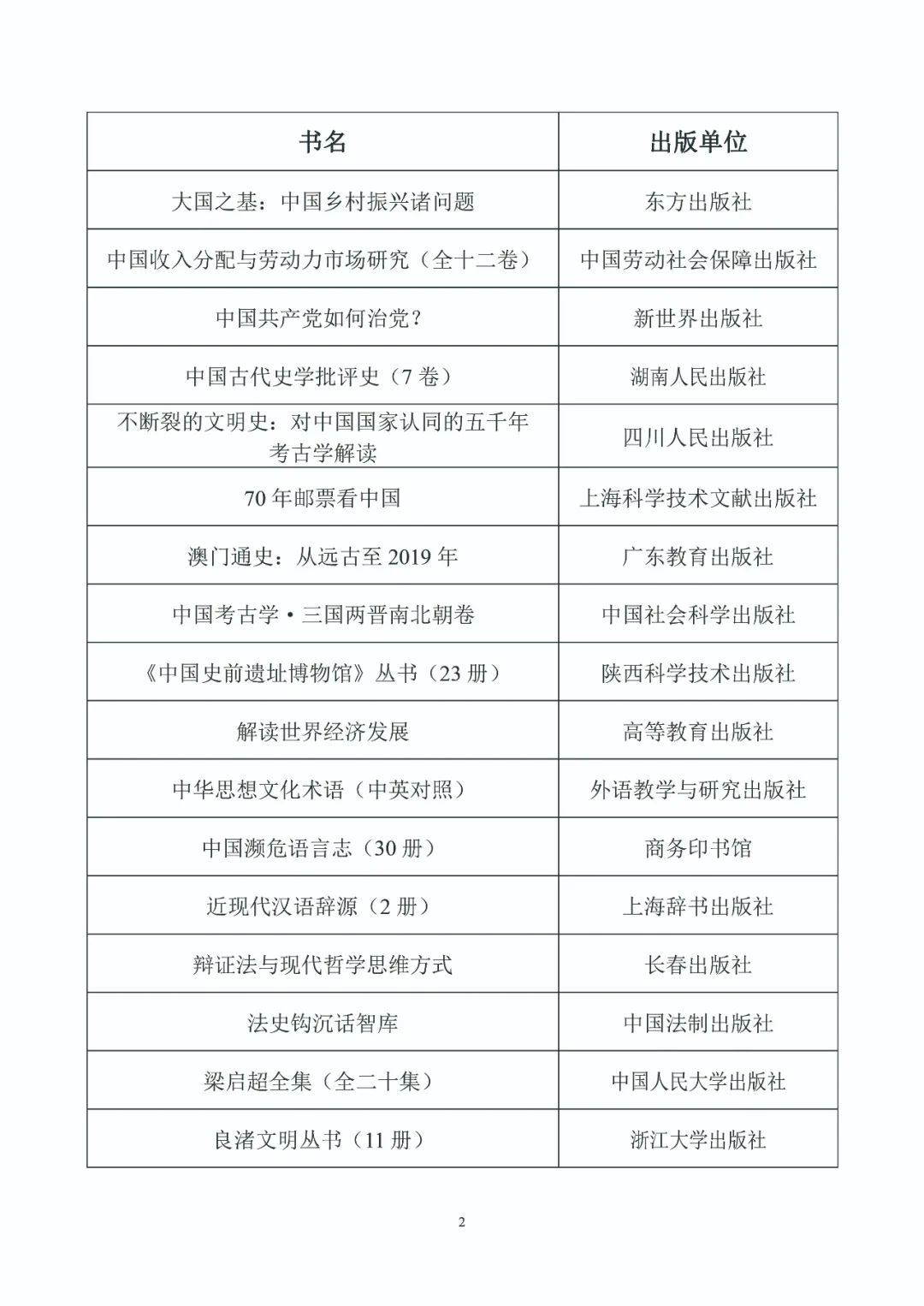 附件2 第五屆中國出版政府獎入選獲提名獎名單公示