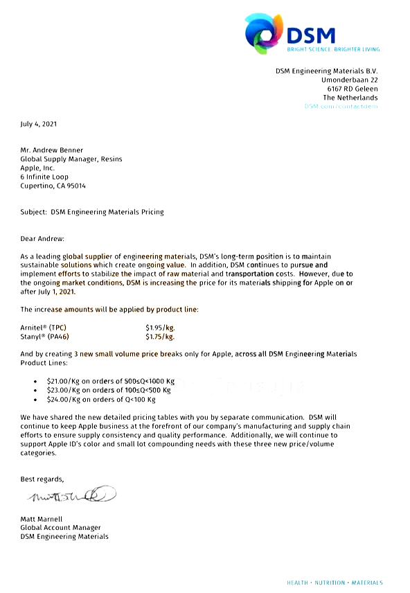 【帝斯曼上調(diào)特種尼龍彈性體價(jià)格】7月7日,帝斯曼宣布將對(duì)7月1日上調(diào)公司的部分產(chǎn)品價(jià)格,漲價(jià)產(chǎn)品及漲幅如下:Arnitel®TPC上調(diào)1.95美元/千克(約12634元/噸);Stanyl®PA46上調(diào)1.75美元/千克(約11338元/噸)。