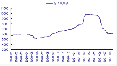 《中國經營報》記者注意到,除了博匯紙業,上半年包括晨鳴紙業(000488.SZ)等相關上市紙企的業績也出現了大幅增長。但值得注意的是,從6月份開始,白卡紙價格進入了下跌通道,8月份其價格已跌至6100元/噸左右,與5月份的價格相比,幾近“腰斬”。