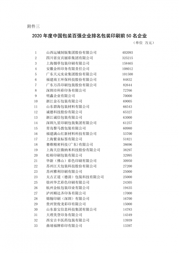 2020年度中國包裝百強及包裝印刷前50名等企業名單公示