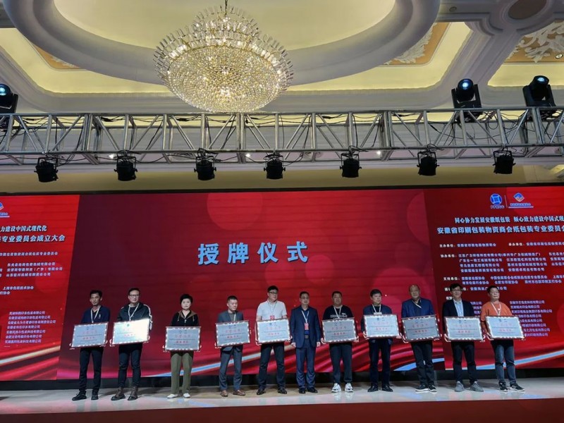 由李新江為主任委員,馬興龍、劉武、周必森為常務(wù)副主任委員,徐之道為監(jiān)事會副主席,佘玉平等 8 人為副主任委員,吳渭平等 10 人為副秘書長的安徽省印刷包裝物資商會紙包裝專業(yè)委員會,于 4 月 28 日下午,在蕪湖市漢爵陽明大酒店二樓宴會廳,舉行了有多方代表近 200 人參加的隆重的成立大會。
